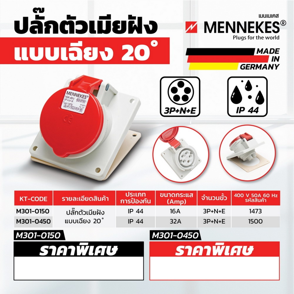 • MEMNEKES IP44 ปลั๊กตัวเมีย แบบเฉียง 3P+N+E 400V/32A (1500 )