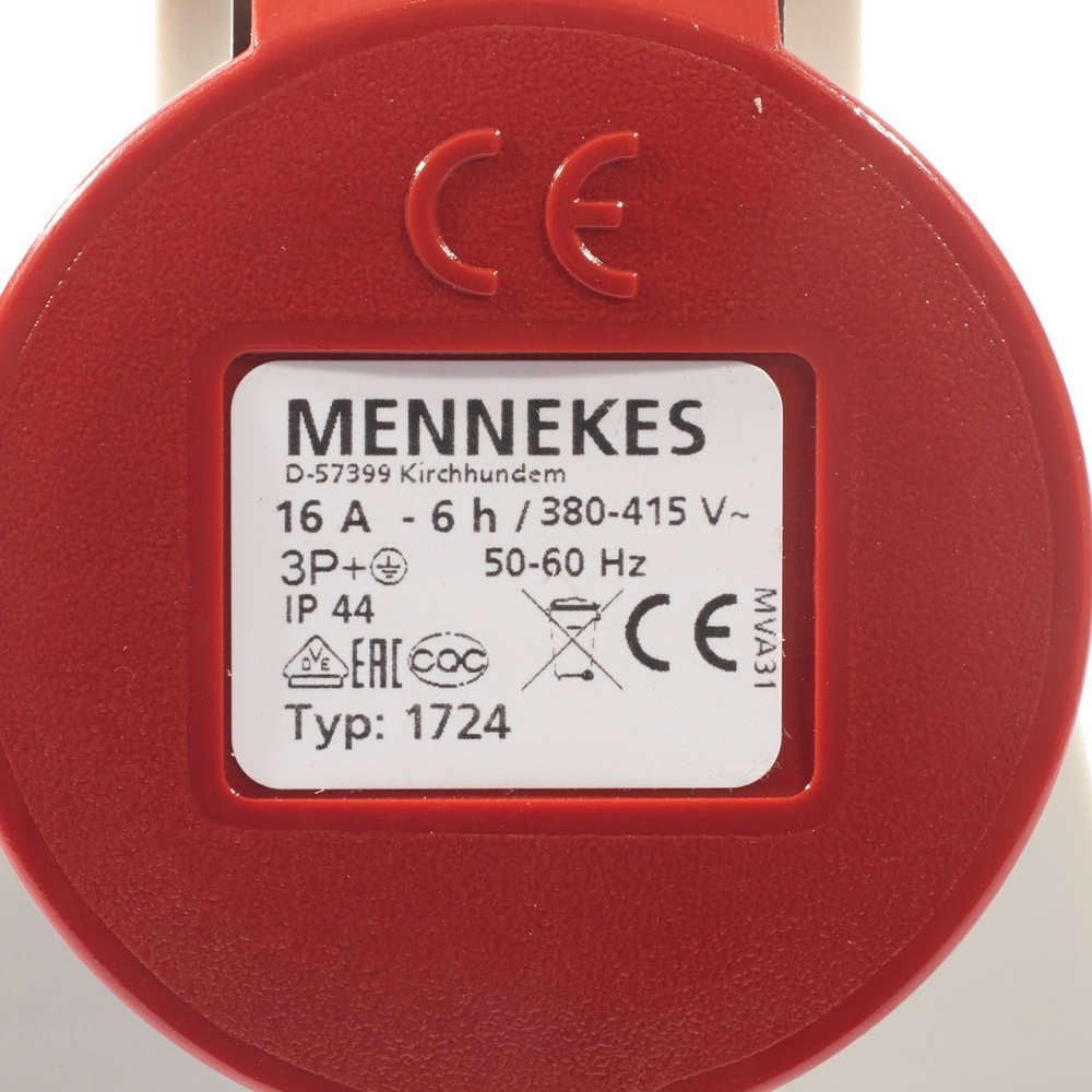 MENNEKES 1724 IP44 ปลั๊กตัวเมียติดผนัง CEE เข้าสายบน-ล่าง ฐานปรับได้ 180˚ 3P+E 400V 16A