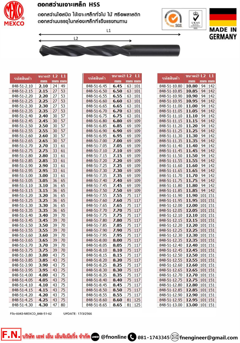 • ดอกสว่านคม ทนความร้อนได้ดี ทำให้เจาะชิ้นงานได้ง่ายและต่อเนื่อง