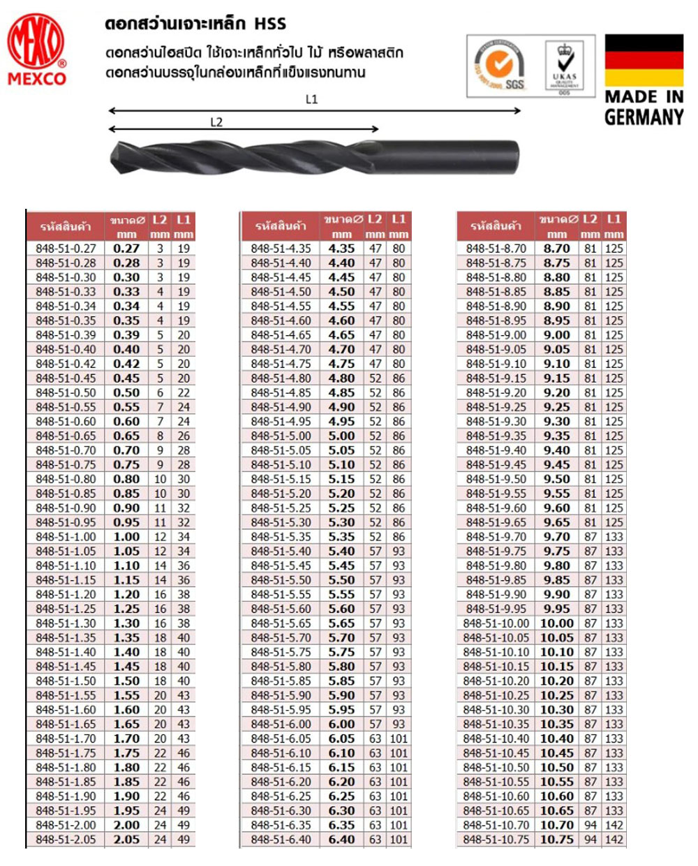 • ดอกสว่านคม ทนความร้อนได้ดี ทำให้เจาะชิ้นงานได้ง่ายและต่อเนื่อง