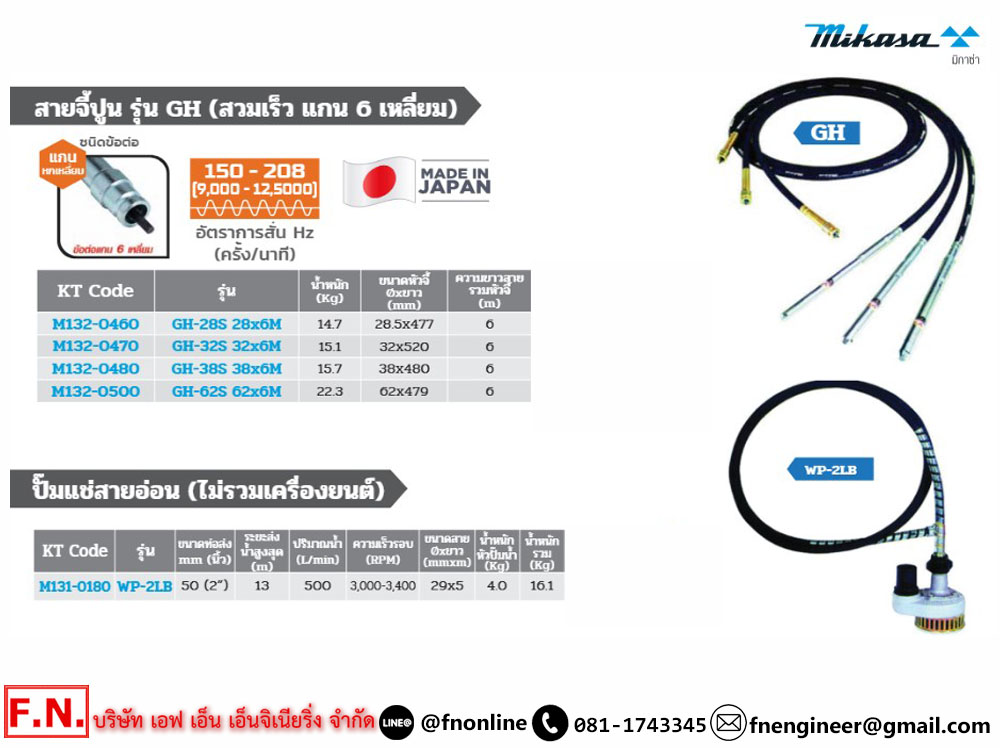 • MIKASA หัวจี้พร้มสายจี้คอนกรีต รุ่น GH (สวมเร็ว แกน 6 เหลี่ยม)