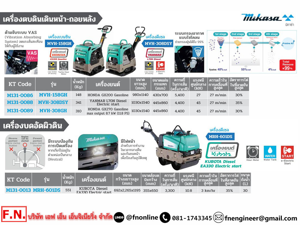 • MIKASA MVH-158GH เครื่องตบดินเดินหน้า-ถอยหลัง