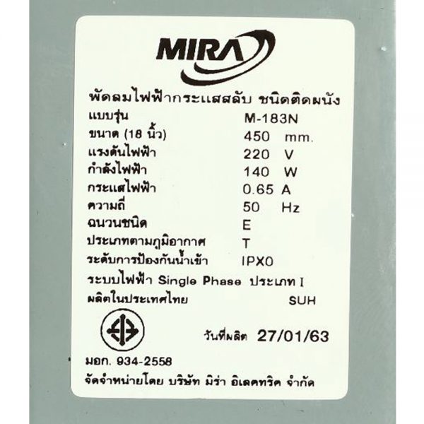 MIRA M183N พัดลม 18″ อุตสาหกรรมติดผนัง สีเทา