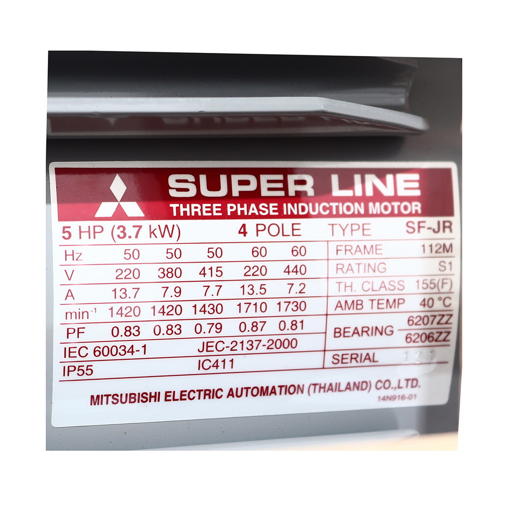 • IP-55 มอเตอร์ 5 HP 3 เฟส 4P 220/380Vมอเตอร์มิตซูบิชิ รุ่น ซุปเปอร์ไลน์