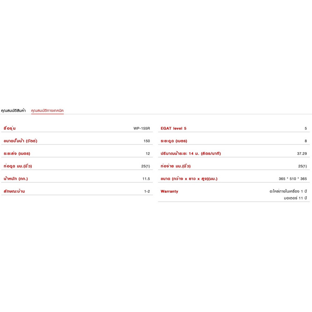 • ขนาดปั๊ม : 150 วัตต์
