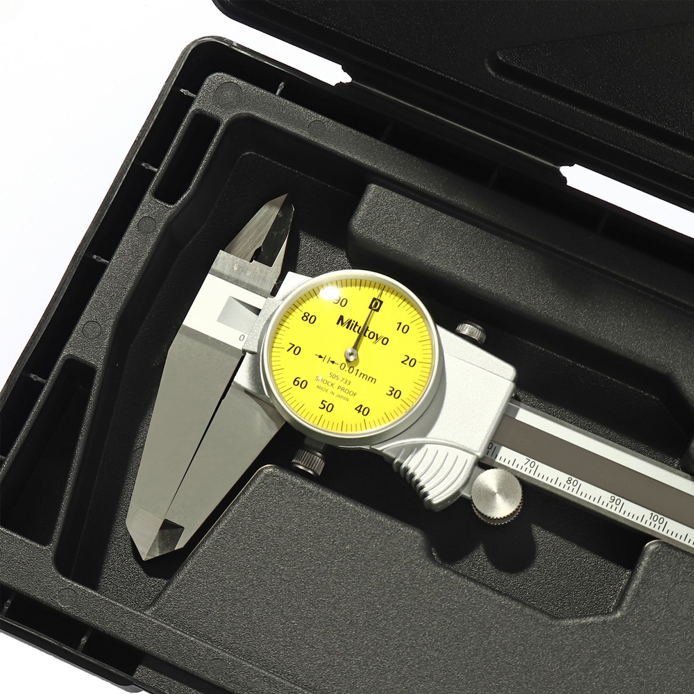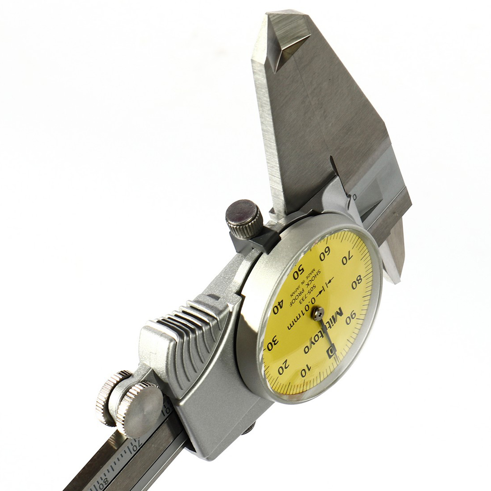 • 505-733 Mitutoyo Dial Caliper ได้รับการออกแบบใหม่สำหรับการเลื่อนหน้าปัดเพื่อการเลื่อนที่ง่ายขึ้น นุ่มนวล ไม่ติดขัด และมีการป้องกันการกระแทกสูง