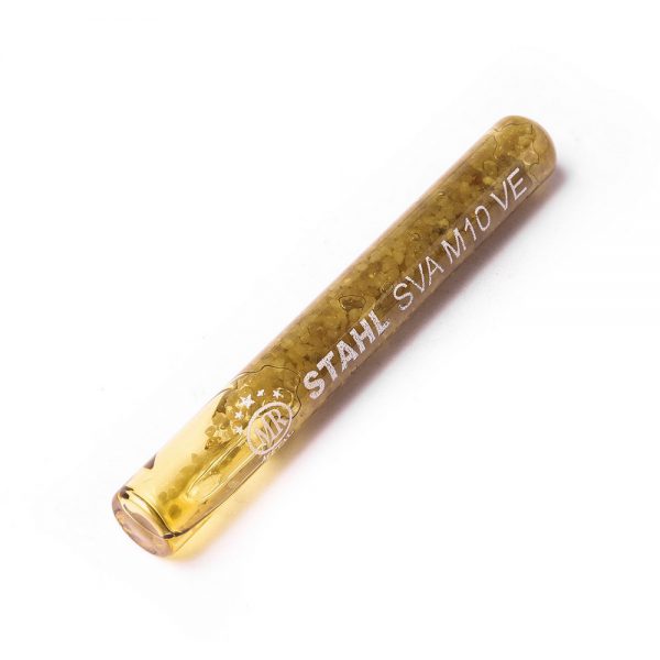 พุกเคมีแบบปั่น M10 STAHL-SERIES แบรนด์ เอ็มอาร์-เมทัล MR METAL รุ่น SVA-VE-10 น้ำยาเคมีหลอดแก้วใช้คู่กับสตัดพุกเคมีสำหรับติดตั้งกับวัสดุ เช่น คอนกรีต และหิน รับแรงดึงได้สูง สามารถติดตั้งในคอนกรีตที่ชื้นและรูเจาะมีน้ำขัง ไม่มีสารก่อมะเร็ง และ ไม่มีกลิ่น
