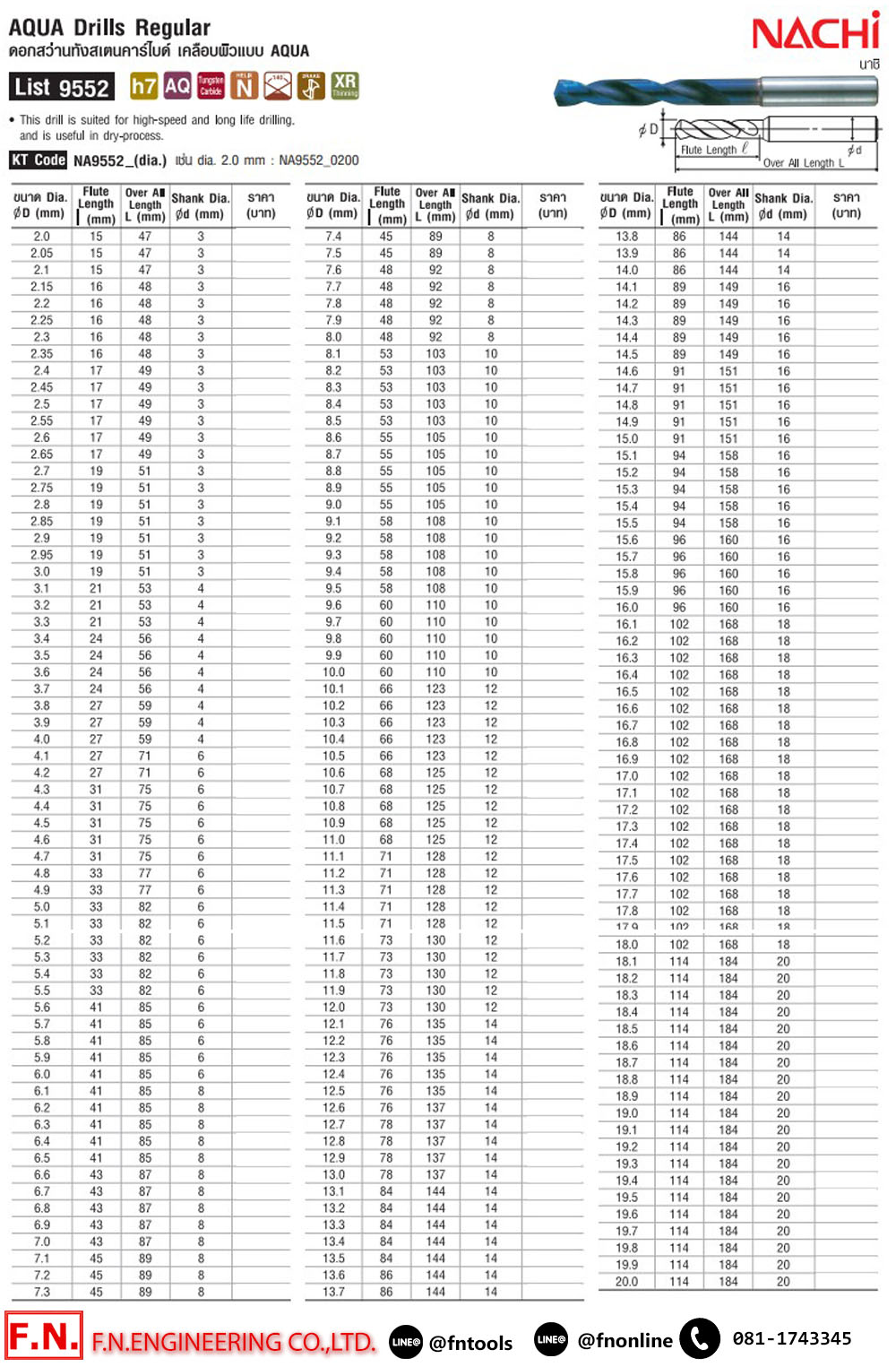 • NACHI L9552_2.5MM ดอกสว่านคาร์ไบด์เคลือบ TIALN