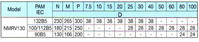• เกียร์ทด NMRV 130 สำหรับมอเตอร์ขนาด 2 – 10 แรงม้า