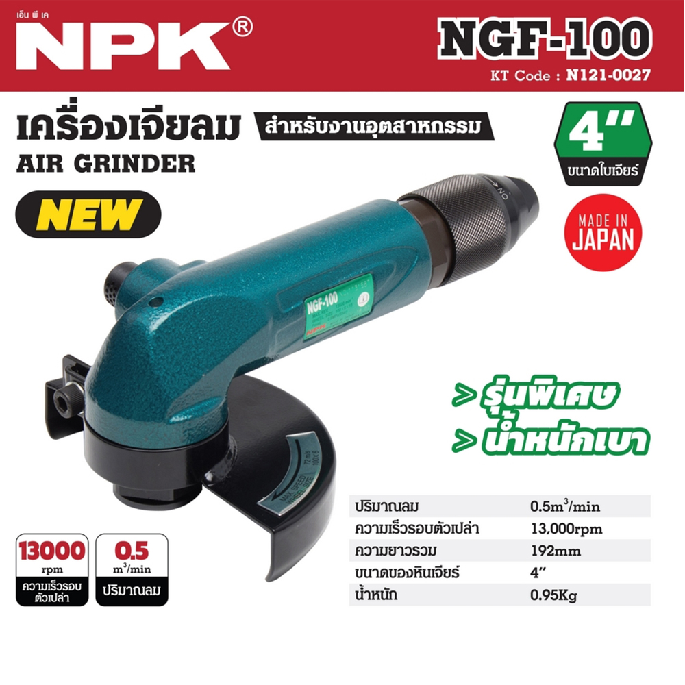 NPK NGF-100 เครื่องหินเจียร์ลม 4″ (น้ำหนักเบา) ความเร็วรอบ 13,000 รอบ/นาที