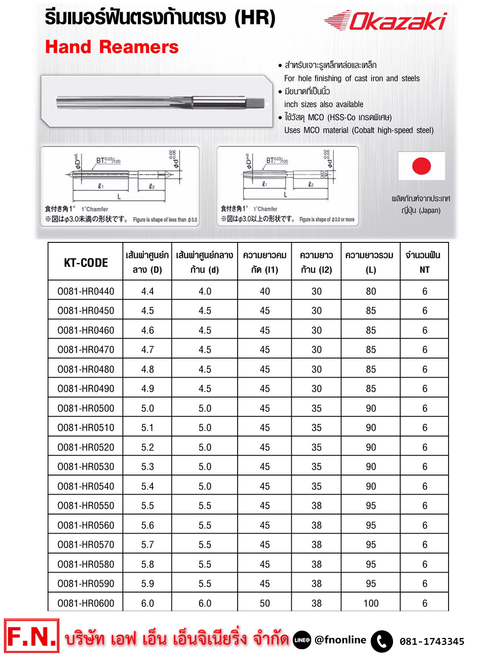 • วัสดุ Material: HSS-CO เกรดพิเศษ