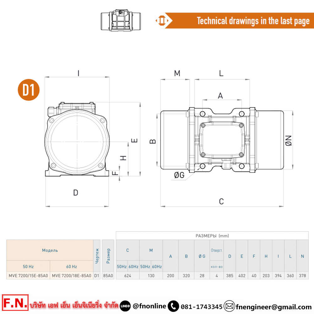 • Centrifugal Force (kg) แรงสั่นสะเทือน 50Hz. : 7,246 Force (kg)
