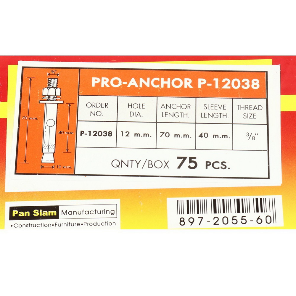 PANSIAM พุกเหล็ก ขนาดเกลียว 3/8 นิ้ว รุ่น P-12038  ใช้กับงานติดตั้งคอนกรีตทั่วไป (บรรจุ 75 ชิ้น/กล่อง)