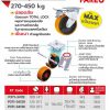ล้อโพลียูรีเทน รุ่น MAX แป้นเบรค ขนาด125 มิลลิเมตร (5 นิ้ว) รับน้ำหนักได้ 350-400 กก. มีแรงยืดหยุ่นสูง ไม่ทำให้พื้นเป็นรอย