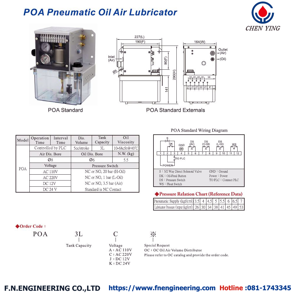 POA-3 ปั้มจ่ายน้ำมันนิวเมติก ชนิดน้ำมัน-ลม 220V.ถัง3 ลิตร (มีระบบ PLC)