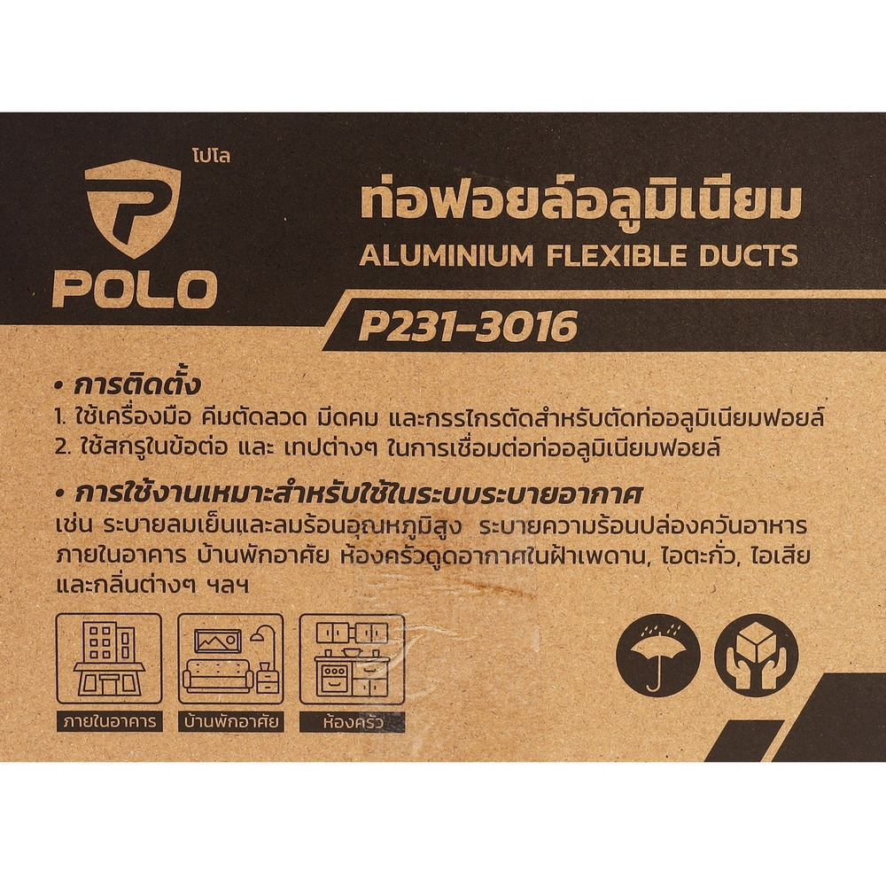 • ท่อลมระบายอากาศอเนกประสงค์ POLO ขนาด 10 นิ้ว (250 มม.) ยาว 5 เมตร แบบหนา3 ชั้น ชนิดยืดหยุ่นสูง
