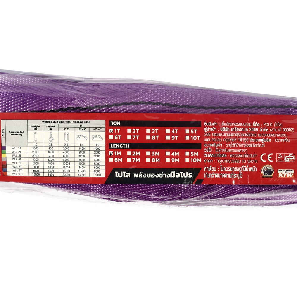 POLO 1 TON สลิงผ้าใบโพลีเอสเตอร์ แบบกลม สลิงอ่อน 1 ตัน กว้าง 45 มิล ยาว 1 เมตร อัตราการรับแรงดึง 7:1