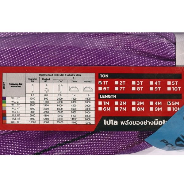 POLO 1 TON 5M สลิงผ้าใบโพลีเอสเตอร์ แบบกลม สลิงอ่อน 1 ตัน กว้าง 45 มิล ยาว 5 เมตร อัตราการรับแรงดึง 7:1