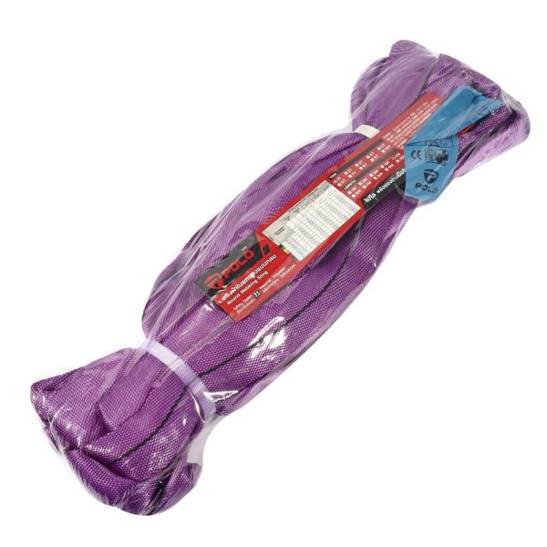 POLO สลิงผ้าใบยกของแบบกลม, สลิงอ่อน ขนาด 1TX5MX45MM อัตราการรับแรงดึง 7:1 ผลิตจากเส้นใยโพลีเอสเตอร์ ได้มาตรฐานยุโรป