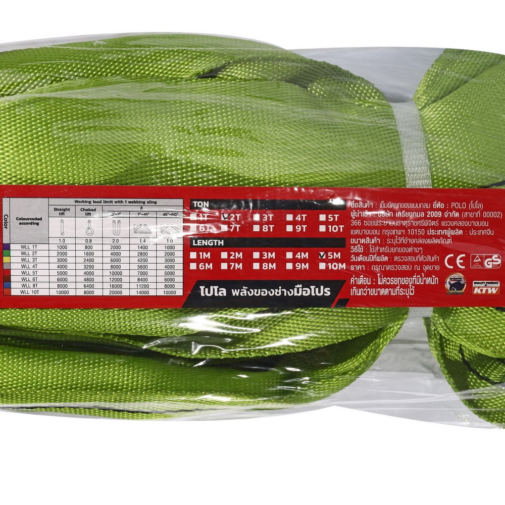 • POLO 2 TON 5M สลิงผ้าใบโพลีเอสเตอร์ แบบกลม สลิงอ่อน 2 ตัน ยาว 5 เมตร อัตราการรับแรงดึง 7:1