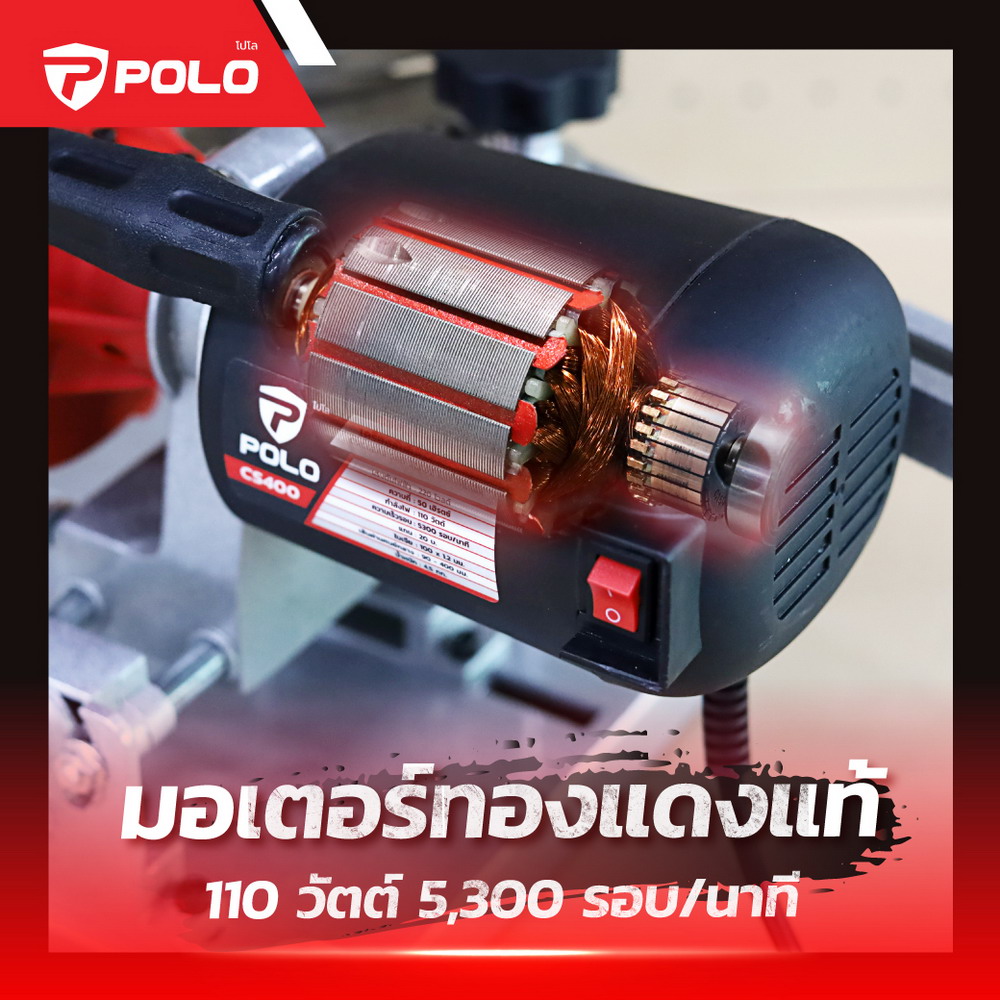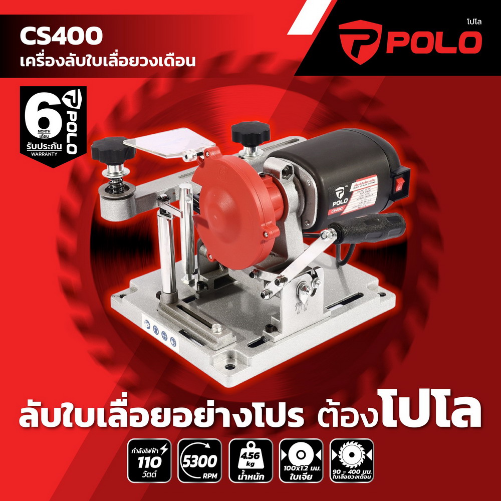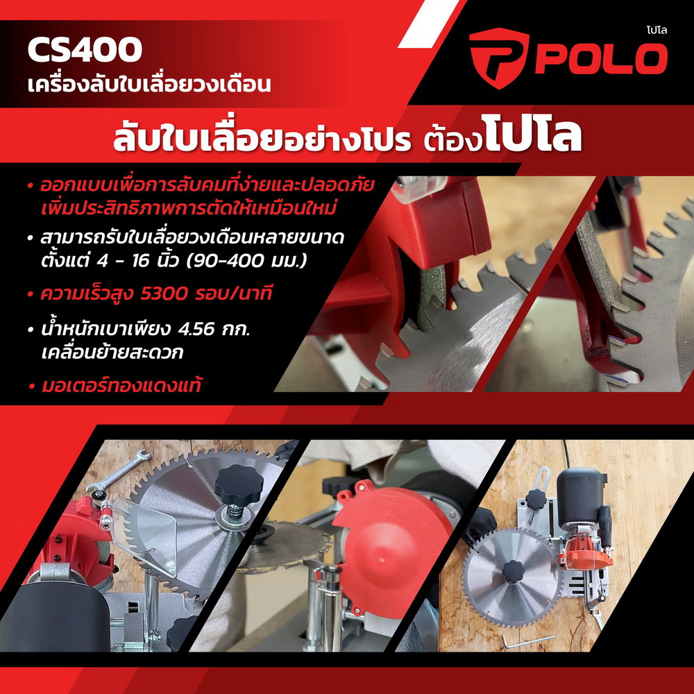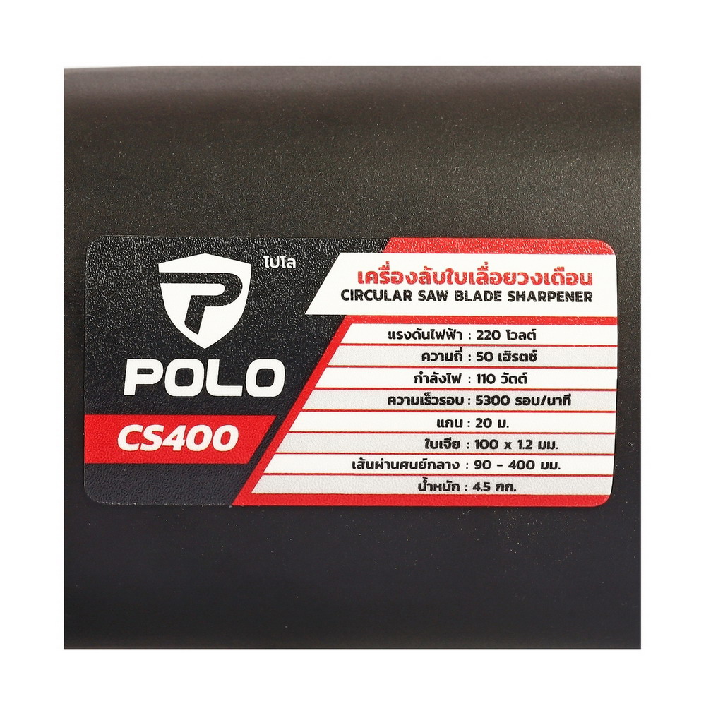 POLO เครื่องลับใบเลื่อยวงเดือน 110 วัตต์ รุ่น CS400 เส้นผ่านศูนย์กลางใบเลื่อยวงเดือน 90 – 400 มม. (4 – 16 นิ้ว) ความเร็วรอบ 5300 รอบ/นาที