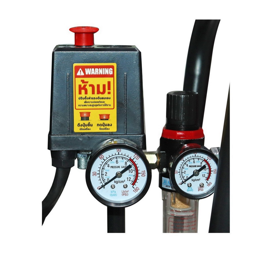 • มีโซลินอยด์วาล์วช่วยปล่อยลมออกจากถัง มีพัดลม ภายในหัวปั๊ม ช่วยลดอุณหภูมิให้กับตัว