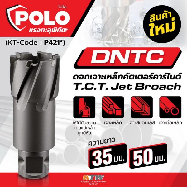 POLO DNTC ดอกเจาะเหล็กคัตเตอร์คาร์ไบด์ (JET BROACH) ขนาด 18X50 มม. TCT เจาะลึกสุด 50 มม.