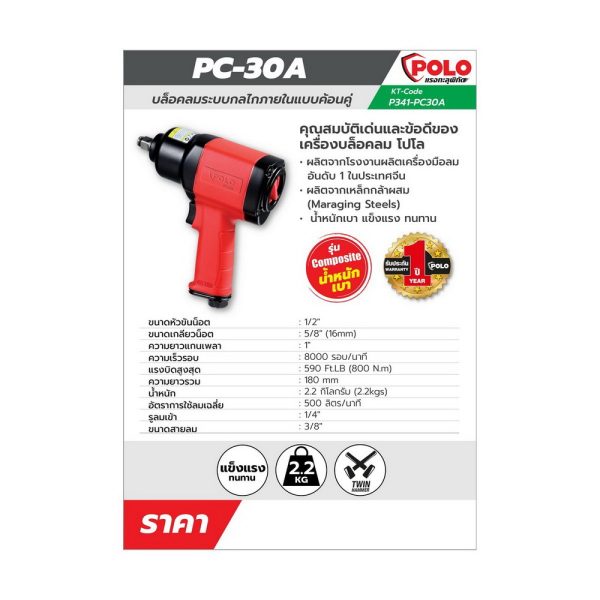 • บล็อกลม POLO รุ่น PC-30A ขนาด 1/2 นิ้ว