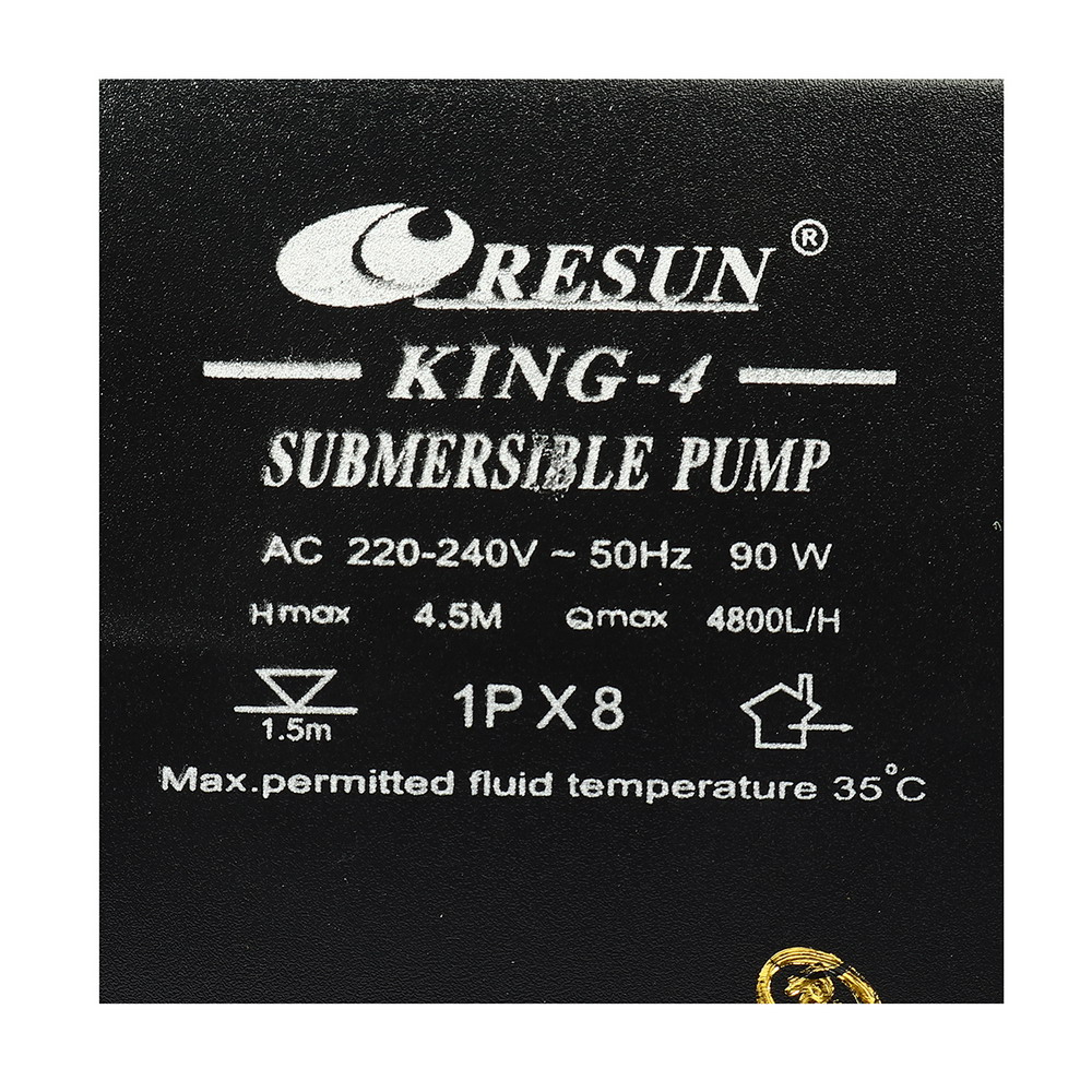• RESUN KING-4 ปั๊มน้ำหมุนเวียนแกนเซรามิค 90W. กำลังปั๊ม 4800 ลิตร/ชม. ปั๊มน้ำสูงสุด 4.5 เมตร