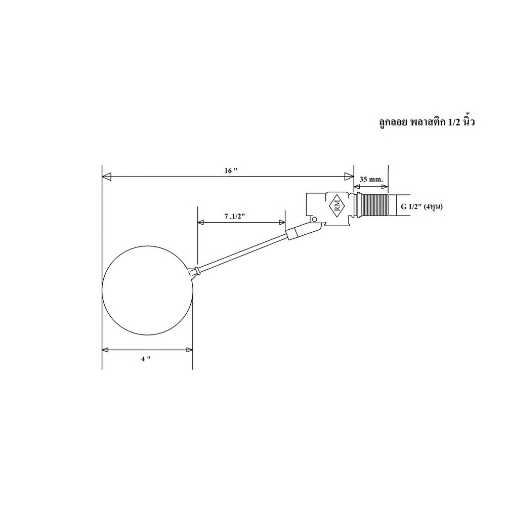 RM ลูกลอย พลาสติก ขนาด 1/2 นิ้ว (4 หุน) แหวนพลาสติก + ไส้พลาสติก ใช้สำหรับติดตั้งกับแท้งค์น้ำ ทำหน้าที่เปิด-ปิดวาล์วน้ำในแท้งค์