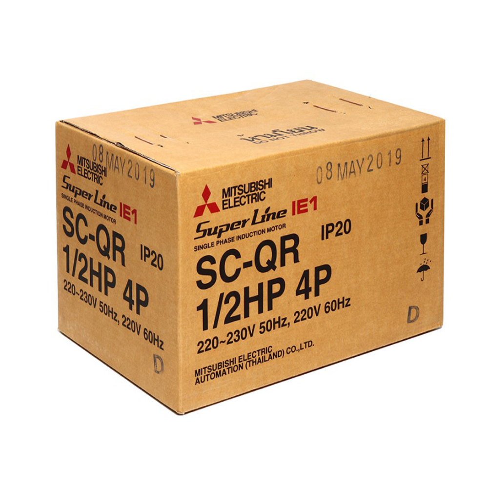 มอเตอร์ MITSUBISHI รุ่น SC-QR กำลัง 1/2 แรงม้า (0.4 กิโลวัตต์) 1 เฟส 220 โวลต์ 4 โพล 2 สาย IP20 ความเร็วรอบ 1450 RPM (รอบต่อนาที)