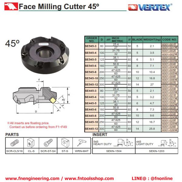 • SE545-4 Face Milling Cutter 45º