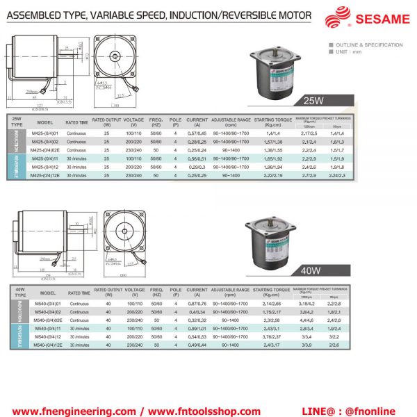 SESAME ชุดมอเตอร์ปรับรอบ M425-402E+US425-402E 220V 25W