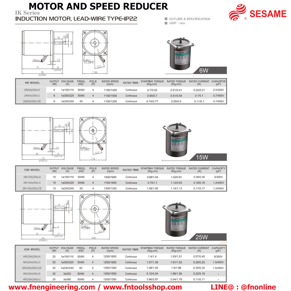 SESAME 4IK25A[GN]-CE มอเตอร์พร้อมสายไฟแบบเปิด 25W 220V IP22
