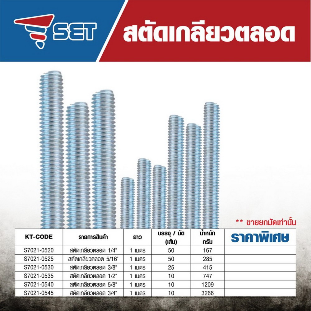 • สตัดเกลียวตลอด ขนาด 3/8 นิ้ว ชุบอิเล็กโทร กัลวาไนซ์ ยาว 1 เมตร แบรนด์ SET