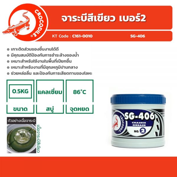 SG-406 ตราจระเข้ จาระบีสีเขียว เบอร์ 2 ขนาด 0.5 กก.ช่วยหล่อลื่น และป้องกันการเสียดทานของโลหะ