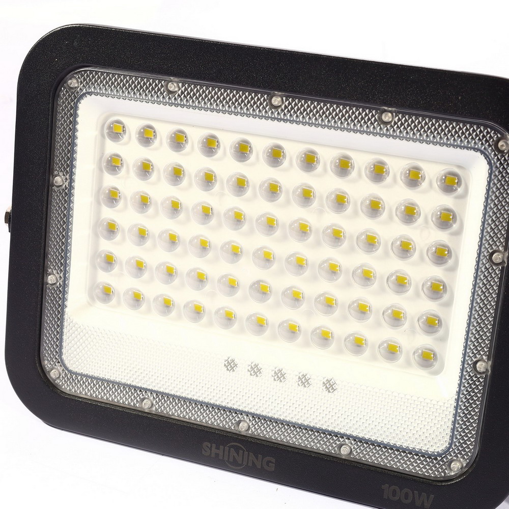 SHINING โคมไฟสปอร์ตไลท์โซล่าร์เซลล์ 100 วัตต์ ความสว่างสูงสุด 2,600 ลูเมน แสงสีขาว มาตรฐานระดับ IP65 วัสดุผลิตจากอะลูมิเนียมคุณภาพสูง
