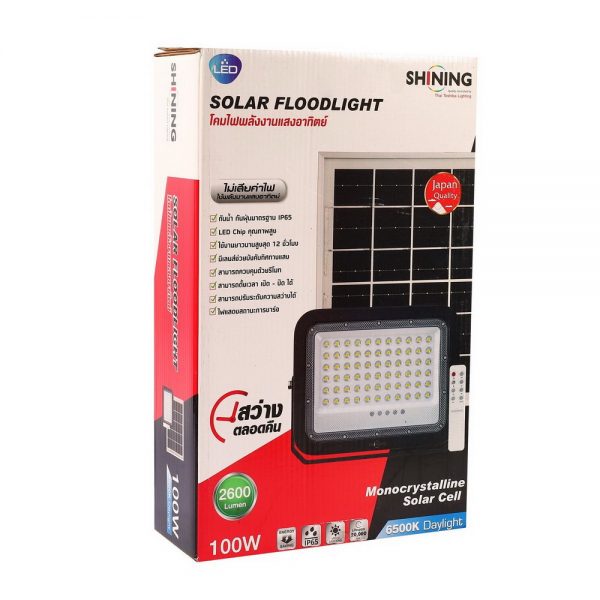 • โคมไฟสปอร์ตไลท์โซล่าร์เซลล์ 100 วัตต์ SHINING แสงสีขาว
