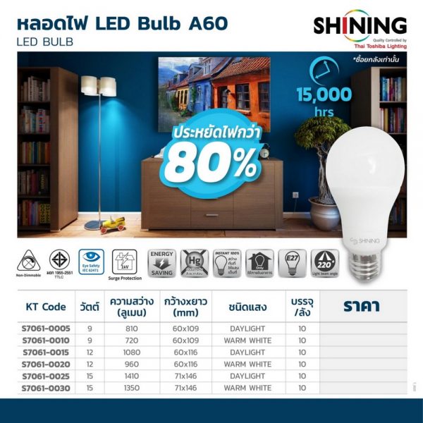 • หลอดไฟ LED Bulb A70 แบรนด์ SHINING