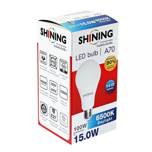 • SHINING LED Bulb A70 หลอดไฟ 15W.ขั้ว E27 แสง Day Light 6500K (10ชิ้น)