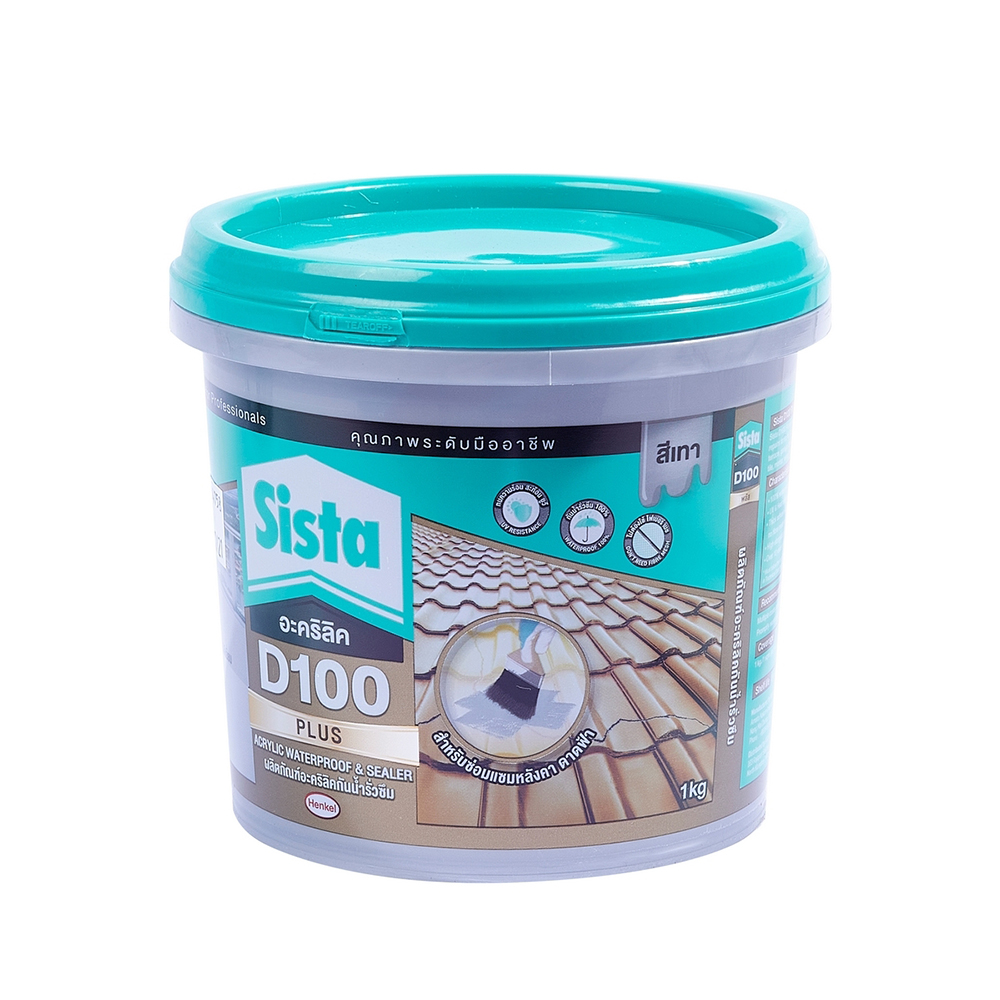 • ผลิตภัณฑ์อะคริลิคกันน้ำรั่วซึม สีเทา ขนาด 1 กก. SISTA รุ่น D100 พลัส
