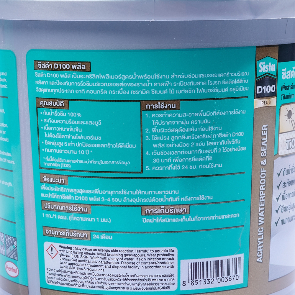 • ผลิตภัณฑ์อะคริลิคกันน้ำรั่วซึม สีเทาขนาด 1 กก. SISTA รุ่น D100 พลัส