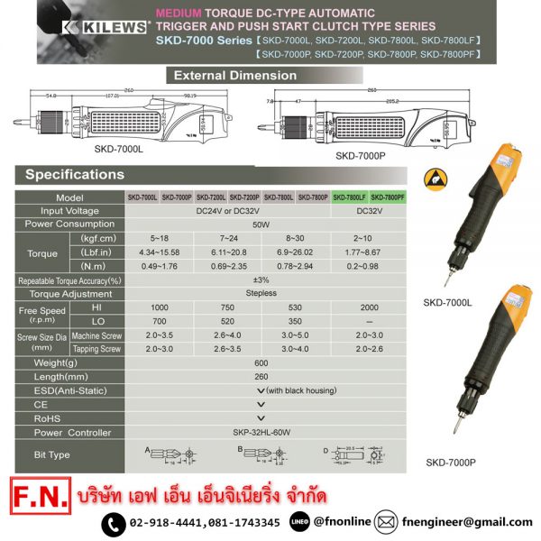 SKD-7800LF ชุดไขควงทอร์คไฟฟ้า DC32V แรงบิด 2-10 kgf.cm ความเร็วรอบ 2000 RPM