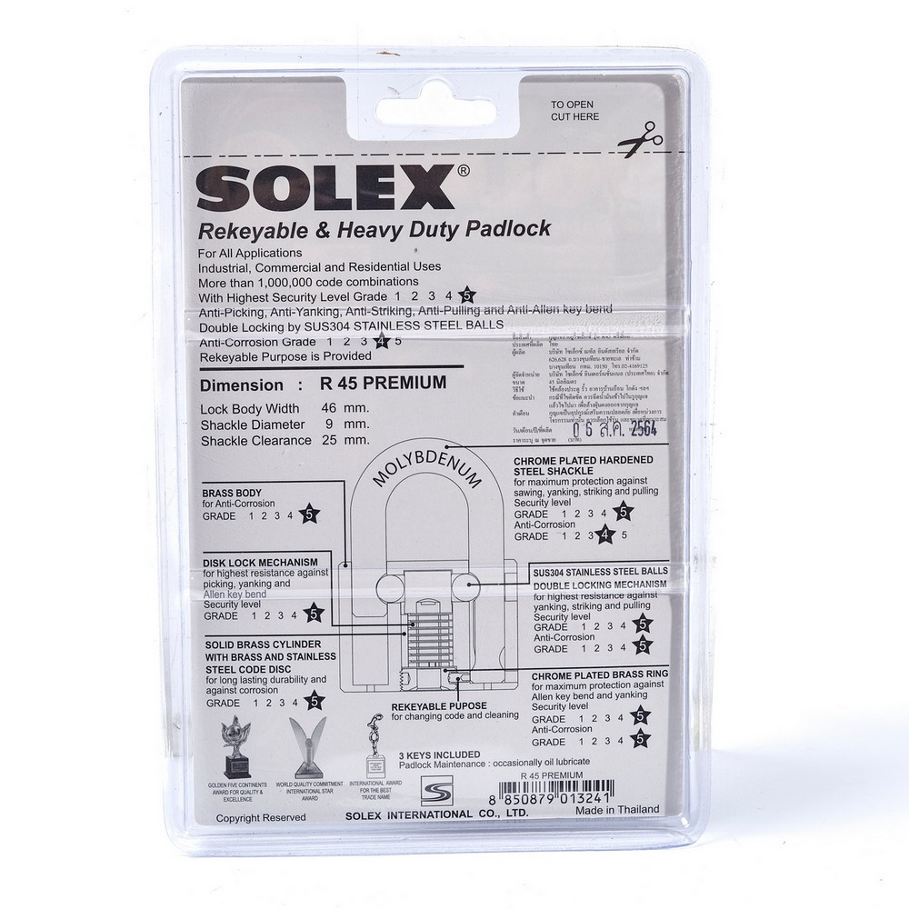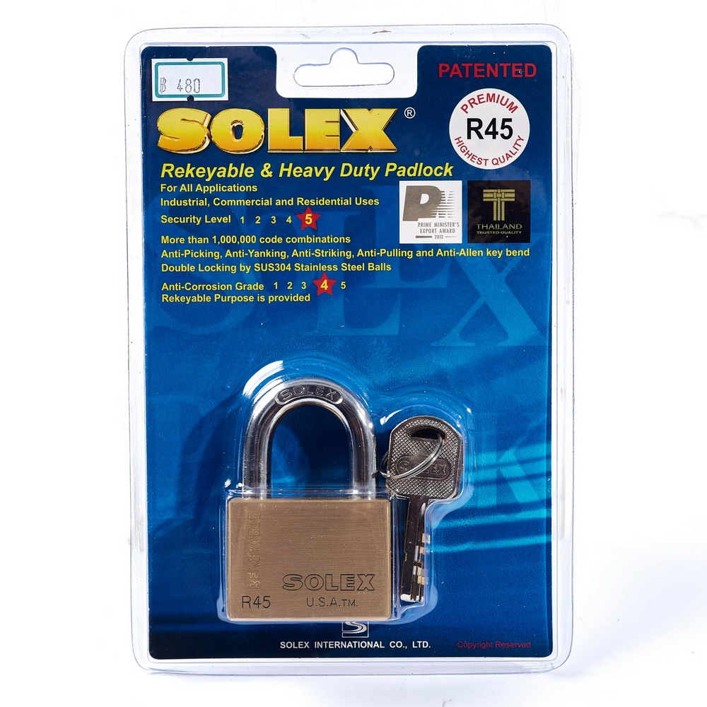 SOLEX R45 PREMIUM กุญแจคล้อง คอสั้น 45MM. ระบบล็อคลูกปืน