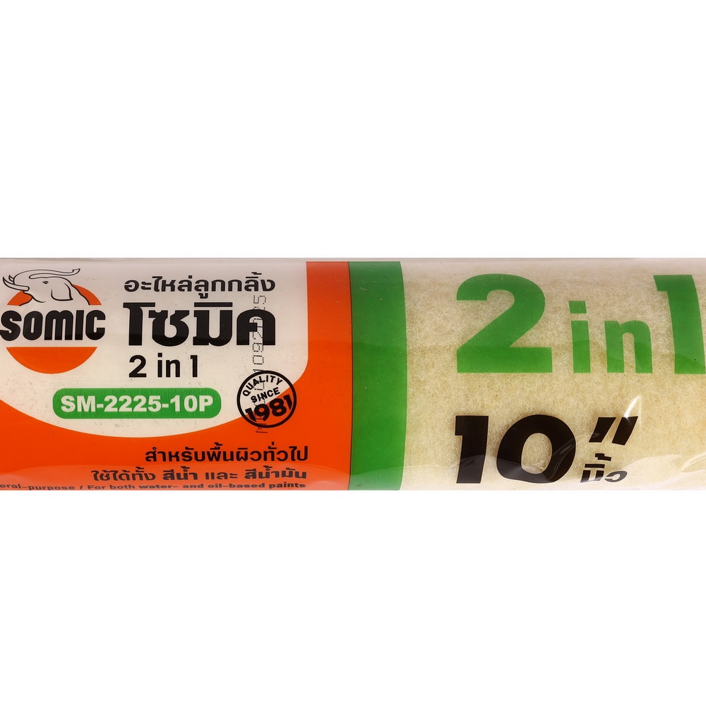 SOMIC อะไหล่ลูกกลิ้ง 2 IN 1 ขนาด 10 นิ้ว รุ่น SM-2225-10P ลูกกลิ้งอเนกประสงค์ สำหรับงานสีทั่วไป ทาได้ทั้งสีน้ำและสีน้ำมัน ผลิตจากวัตถุดิบเส้นใยคุณภาพสูง (12 ชิ้น)