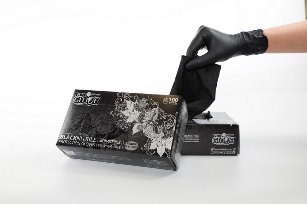 • ถุงมือไนไตร SRI TRANG GLOVES (ถุงมือยางสังเคราะห์) 3.5 กรัม สีดำ แบบไม่มีแป้ง ไซส์ L (1กล่อง/100ชิ้น)