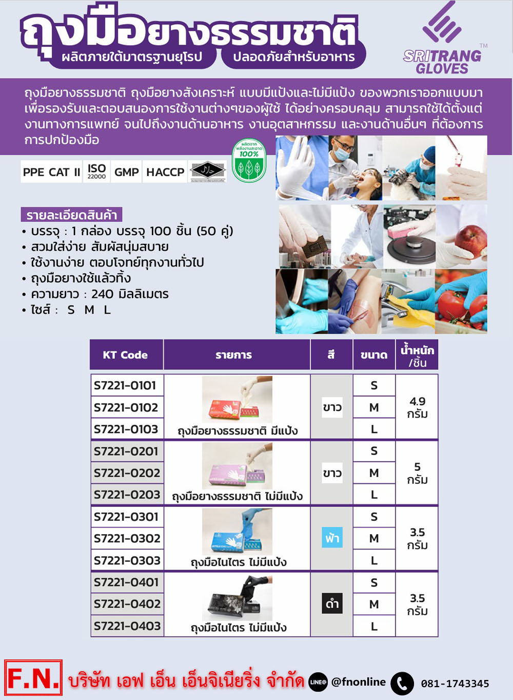 • บรรจุ : 1 กล่อง บรรจุ 100 ชิ้น (50 คู่)