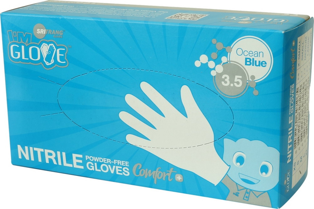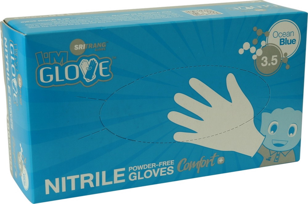 • ถุงมือไนไตร SRI TRANG GLOVES (ถุงมือยางสังเคราะห์) 3.5 กรัม สีฟ้า แบบไม่มีแป้ง ไซส์ M (1กล่อง/100ชิ้น)