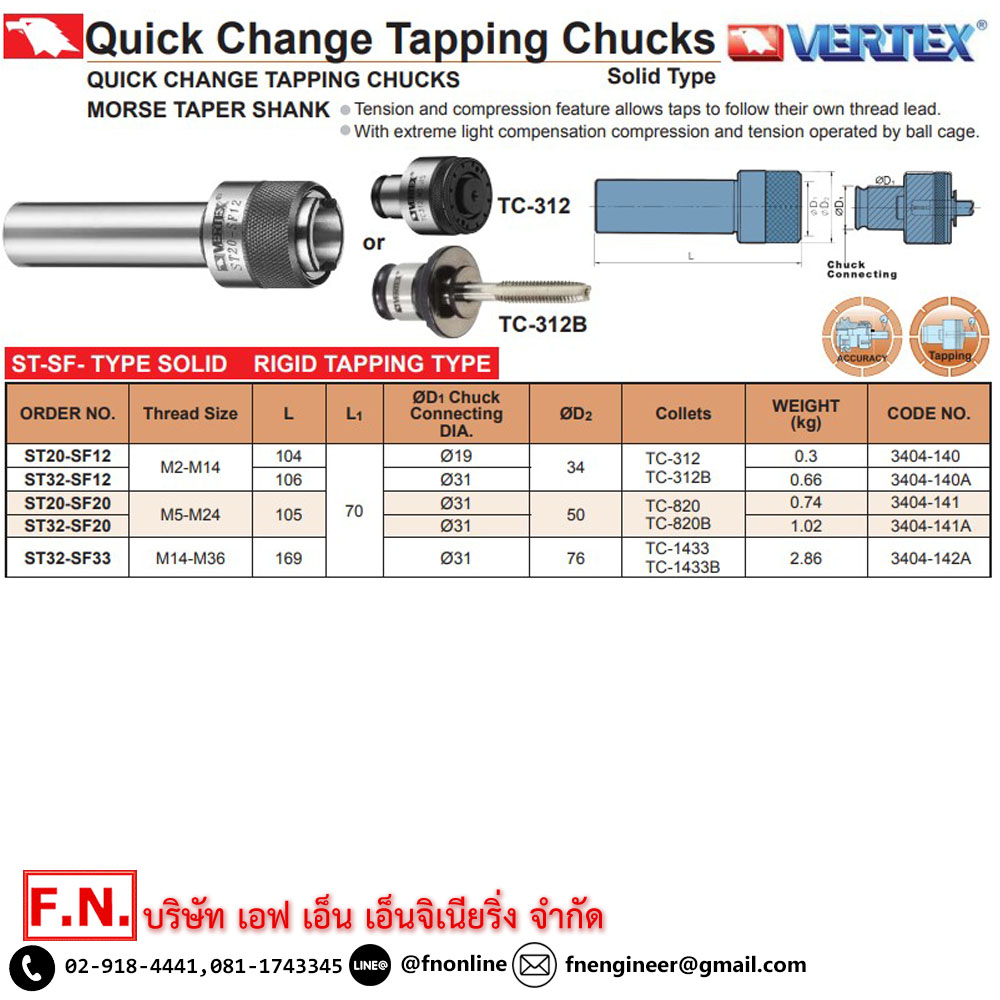 ST20-SF12 หัวจับต๊าปเปลี่ยนเร็ว ด้าม ST ขนาดต๊าป M2-M14