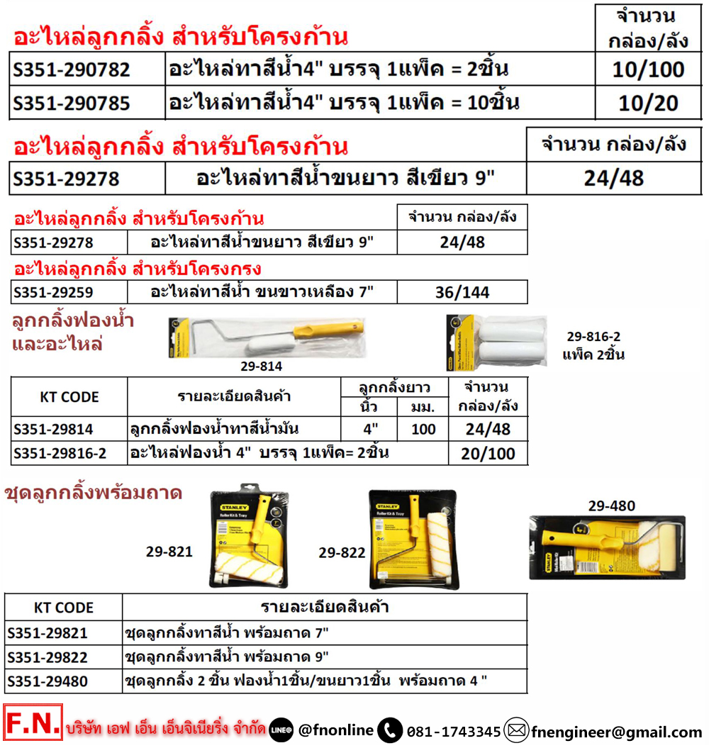 • ชุดลูกกลิ้งพร้อมถาด ขนาด 4 นิ้ว สแตนเล่ย์